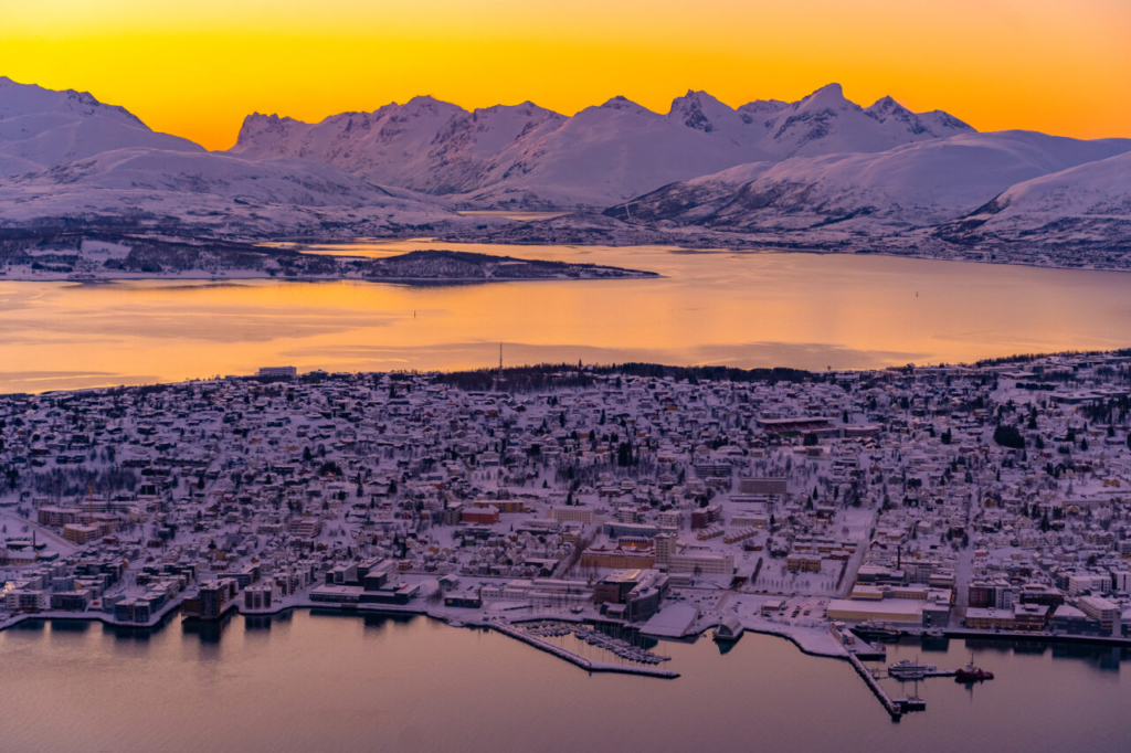 El vuelo a Tromsø transcurre sorteando monumentales fiordos y montañas labradas por los rigores del clima ártico. Se aterriza en uno de los lugares más singulares del mundo, rodeados de montañas con una verticalidad abrumadora, cubiertos de nieve perpetua y donde la luz tiene ese cariz especial que da el hecho de que el Sol apenas logra levantarse del horizonte, inclusive a mediodía. Pareciera que esta ciudad, de casas de colores que tachonan el paisaje, viviese en un atardecer eterno, donde la tenue luz solar se tamiza entre las ramitas de los pocos árboles que soportan los rigores del clima. Mientras cae la noche, el flujo de partículas solares se aproxima a nuestro planeta. El cielo luce despejado y las montañas juegan con los tonos púrpuras y azules. El blanco de la nieve de las cumbres resalta sobre una amalgama de colores pastel, que lentamente dan paso a una oscuridad que se desploma sobre los tejados y los fiordos. Abajo, los espectadores preparan sus cámaras fotográficas, atendidos por guías que les van informando de lo que ocurrirá en pocos minutos.De repente saltan, gritan y muchos se tiran al suelo para ver el cielo en todo su esplendor. Acaba de suceder algo verdaderamente mágico, con una lluvia de luz y color y columnas resplandecientes, que iluminan la nieve de los glaciares. No hay quien no se estremezca ante un espectáculo similar, en el cual las luces del norte danzan y la naturaleza regala la